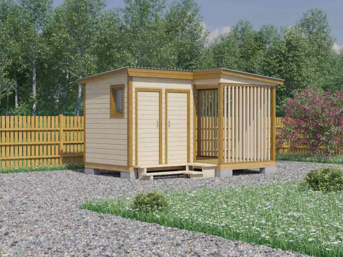 Бытовка для дачи в стиле хай-тек 4,8х5 с верандой4,8х524ДВП-Оргалит: